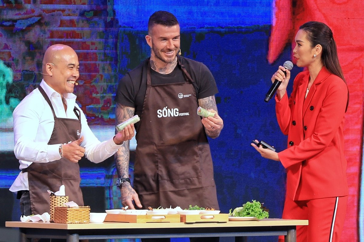 Trước đó, Beckham trổ tài làm món gỏi cuốn truyền thống của Việt Nam...