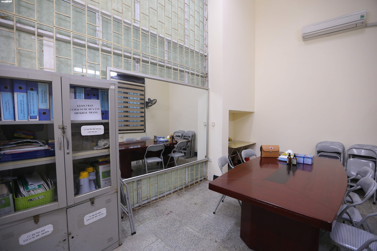 Căn phòng cách ly rộng khoảng 10m2 được bố trí ngay cổng ra vào, cạnh phòng y tế. Phòng cách ly này tiếp nhận được khoảng 10 bệnh nhân cùng lúc.