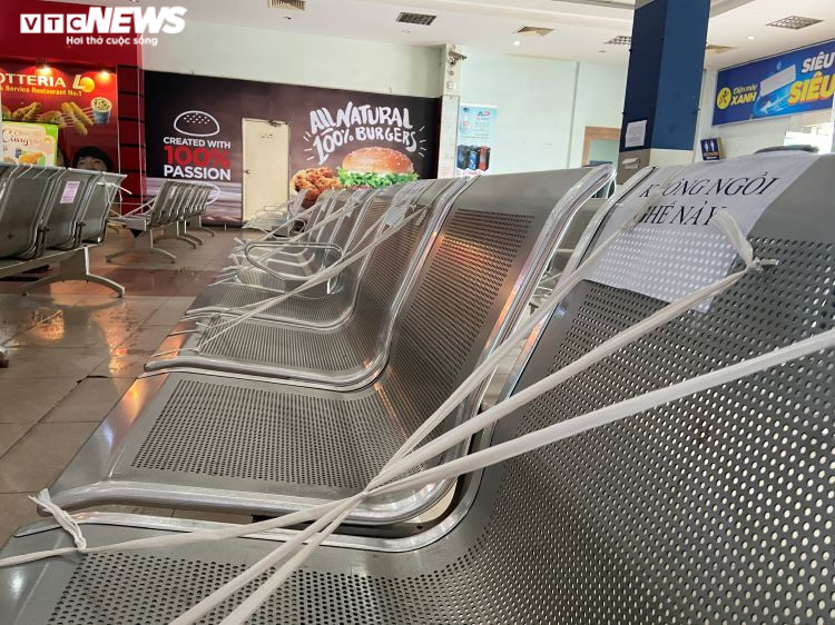 Những hàng ghế ttrong phòng chờ tại ga Sài Gòn không một bóng người.