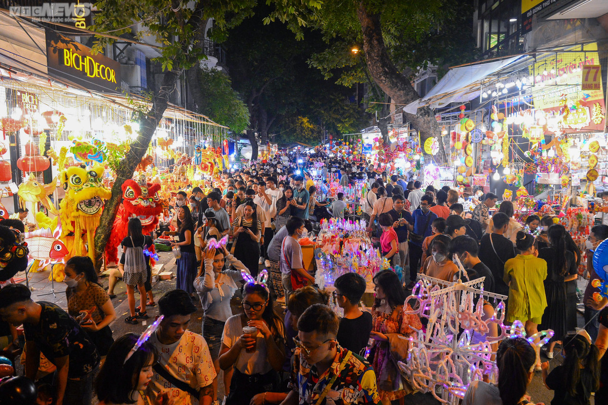 Ghi nhận của PV VTC News tại phố Hàng Mã (quận Hoàn Kiếm, Hà Nội) lúc 20h, hàng nghìn người đổ về đây để đón Trung thu khiến khu vực này trở nên quá tải.