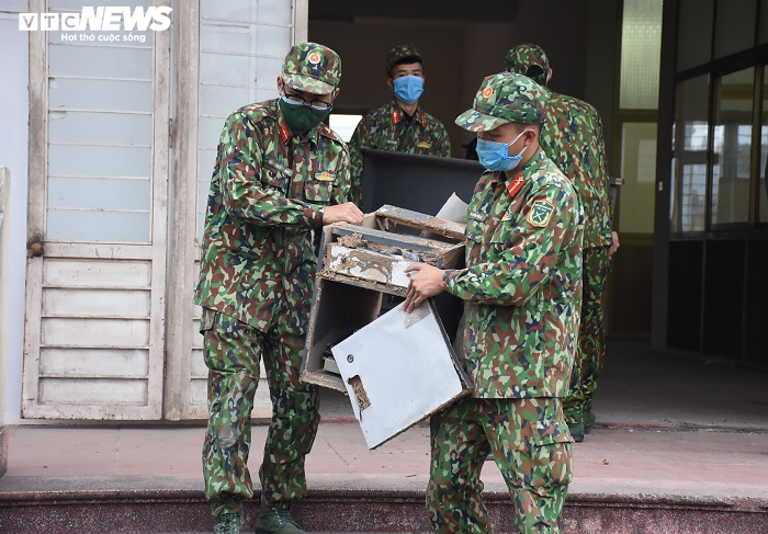 Vật dụng bên trong được các chiến sĩ đưa tới khu vực chứa đồ.