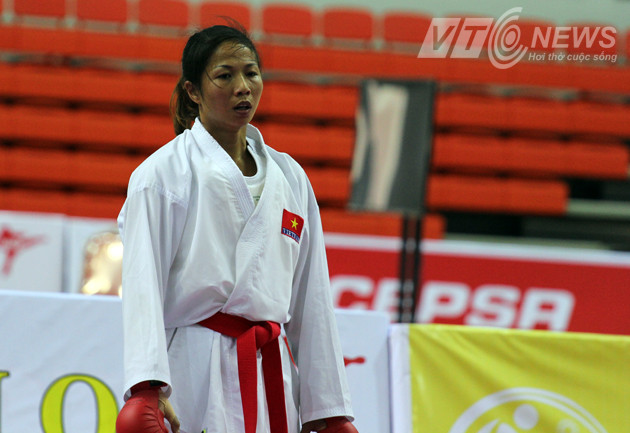 | Phạm Thị Tiến đã hòa 2-2 trước võ sĩ của Malaysia trong trận chung kết Kumite dưới 68kg nữ, nhưng võ sĩ Việt Nam chỉ giành HCB do thua về chỉ số điểm ưu thế. |