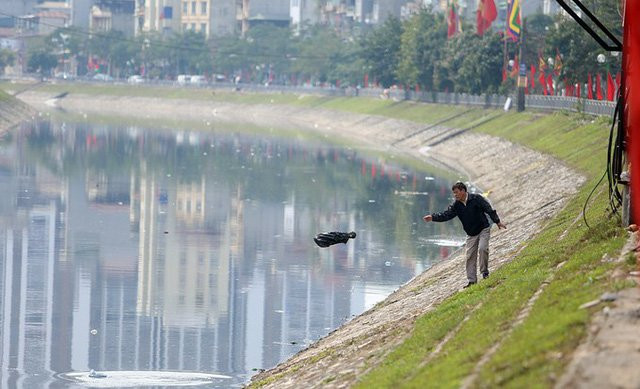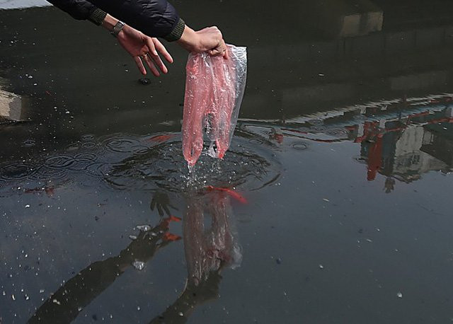 Nhiều người khi phóng sinh và thả tro, vàng mã xong ném luôn túi đựng xuống dòng sông.