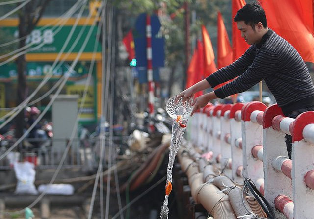 Các điểm dọc phố Khương Đình, Kim Giang, Ngã Tư Sở,... được nhiều người dân chọn là nơi thả cá chép tiễn Táo quân về trời.