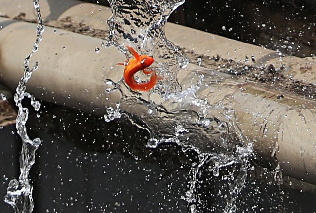 Cá được ném, hất, đổ và rơi tự do xuống dòng sông.