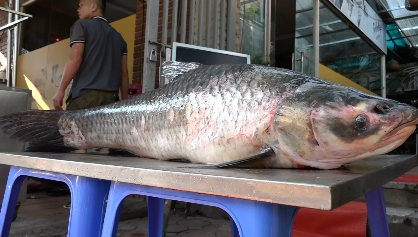 Khi biết thông tin, chủ nhà hàng này đã nhờ một người quen mua hộ. Con cá nặng tới 42kg, dài 1,45m, đường kính thân cá lên tới gần 1m.