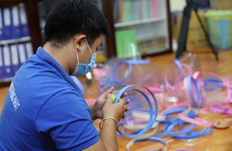 Bà Trịnh Như Ngọc – Chủ tịch UBND phường Thống Nhất (TP Buôn Ma Thuột, Đắk Lắk) cho biết, phường kêu gọi các cán bộ, doanh nghiệp và dân địa phương góp quỹ để mua vật liệu làm mũ ngăn giọt bắn phòng chống dịch Covid -19. Các cán bộ lên Youtube học cách làm rồi phân chia cho mỗi người làm một công đoạn.