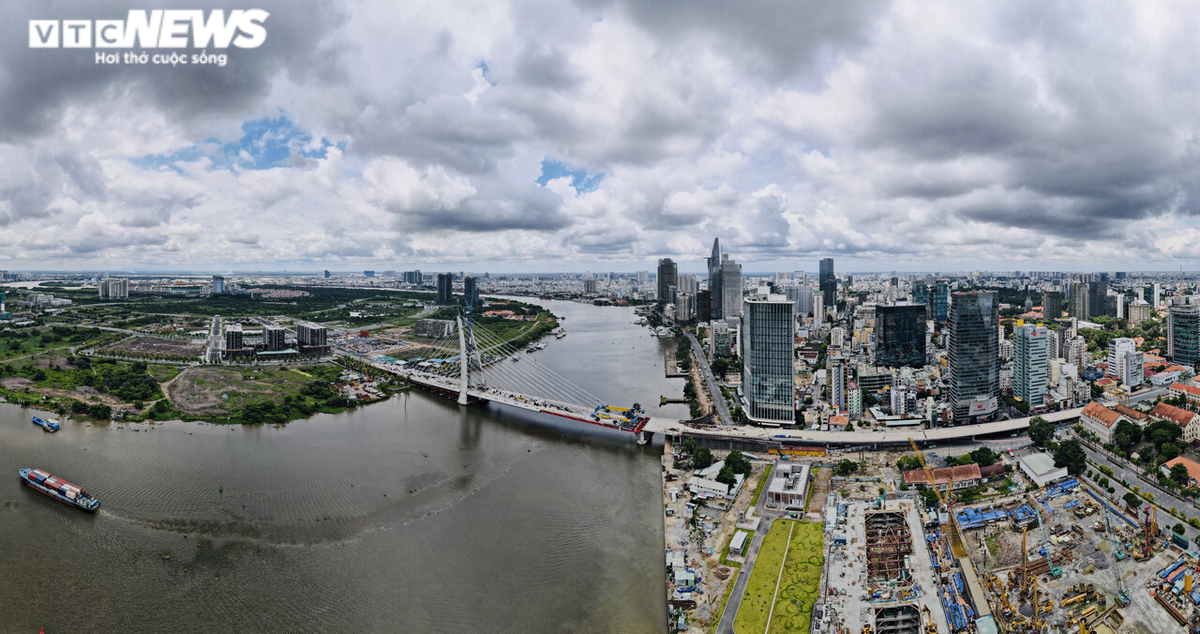 Việc lắp xong đốt dầm này, nhịp chính dây văng cầu Thủ Thiêm 2 đã nối liền hai bên bờ sông giữa quận 1 và TP Thủ Đức.