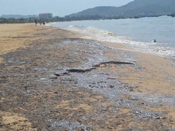 Sự cố tràn dầu xảy ra vào sáng hôm qua, 7/7, tại bờ biển Quy Nhơn (Bình Định) thuộc tổ 46 khu vực 9, Hải Minh, phường Hải Cảng, TP Quy Nhơn