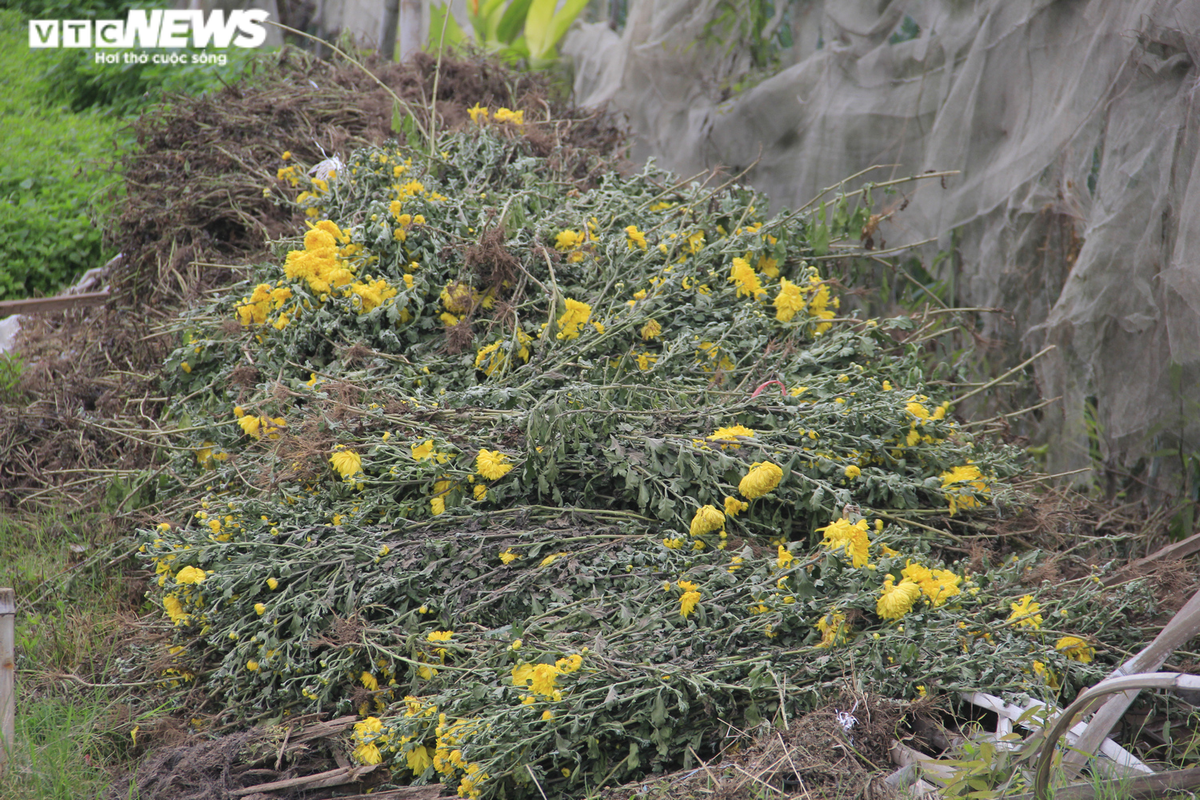 Xót xa cảnh chủ vườn cắt bỏ, chất đống hoa cúc ngay ven đường, nhiều nhà còn để luôn hoa chết khô tại ruộng.