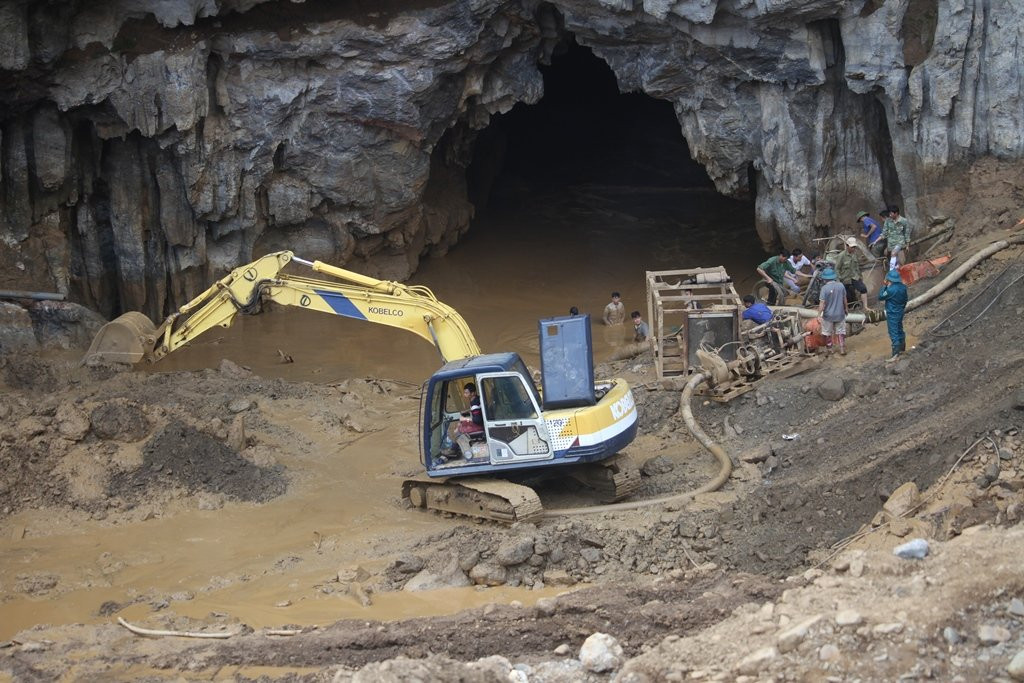 Thời điểm hiện tại, nước trong hang nơi 2 phu vàng được cho là mắc kẹt đã được rút hết, tuy nhiên lượng bùn nhão lại rất lớn, dày khoảng 4m. Bởi vậy, công tác cứu hộ đang gặp rất nhiều khó khăn.