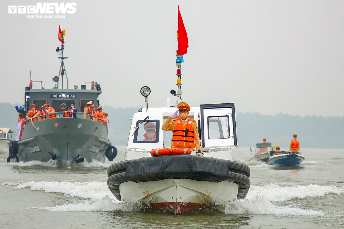 Sáng 15/12, tàu tuần tra cùng nhiều xuồng cơ động của Thủy đoàn I thuộc Cục CSGT xuất quân trên tuyến sông Đuống đoạn qua huyện Tiên Du (tỉnh Bắc Ninh).