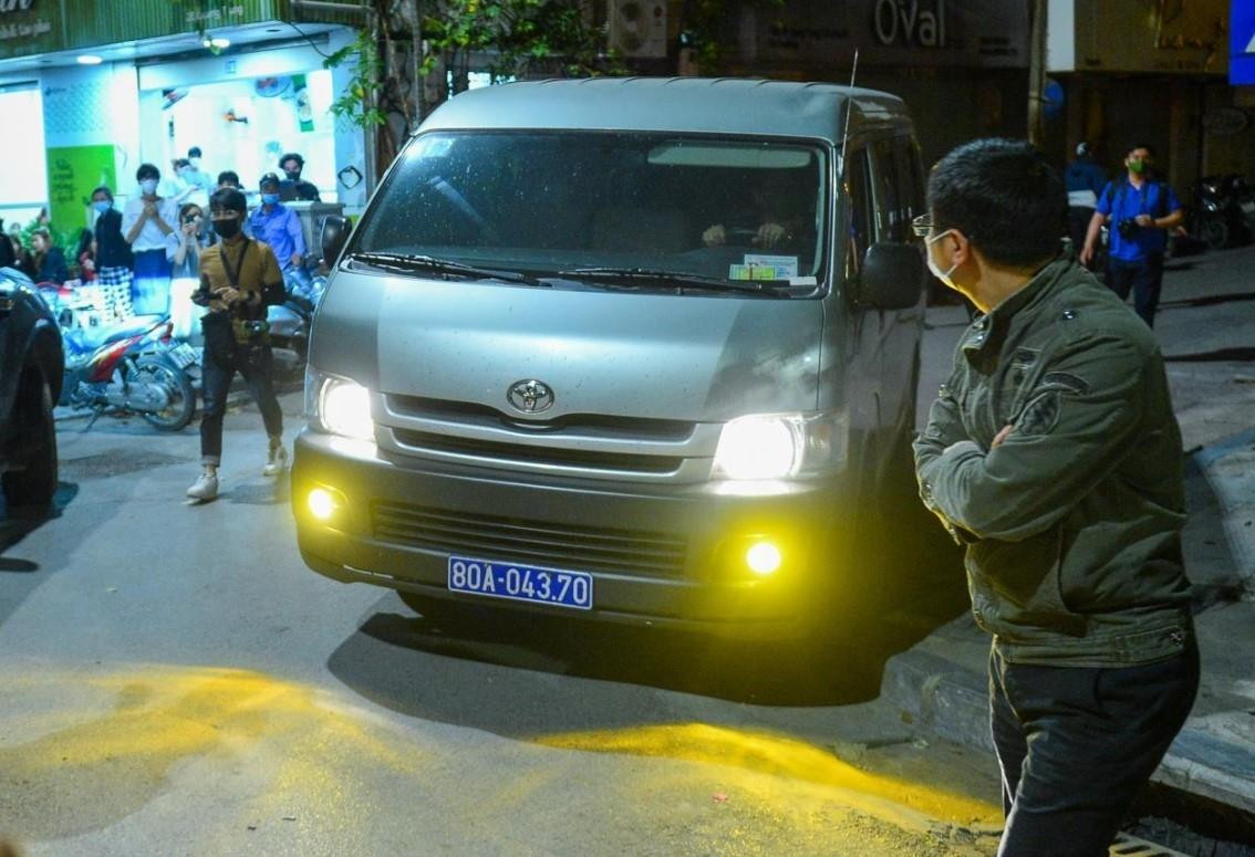 Khoảng 23h50 ngày 5/4, chiếc Fortuner 7 chỗ chở cán bộ công an rời trụ sở Tân Hoàng Minh (phố Quang Trung, quận Hoàn Kiếm, Hà Nội). Tuy nhiên, khoảng 30 phút sau, một chiếc xe biển xanh 12 chỗ bất ngờ lao nhanh về địa chỉ 24 Quang Trung và lùi vào cổng.