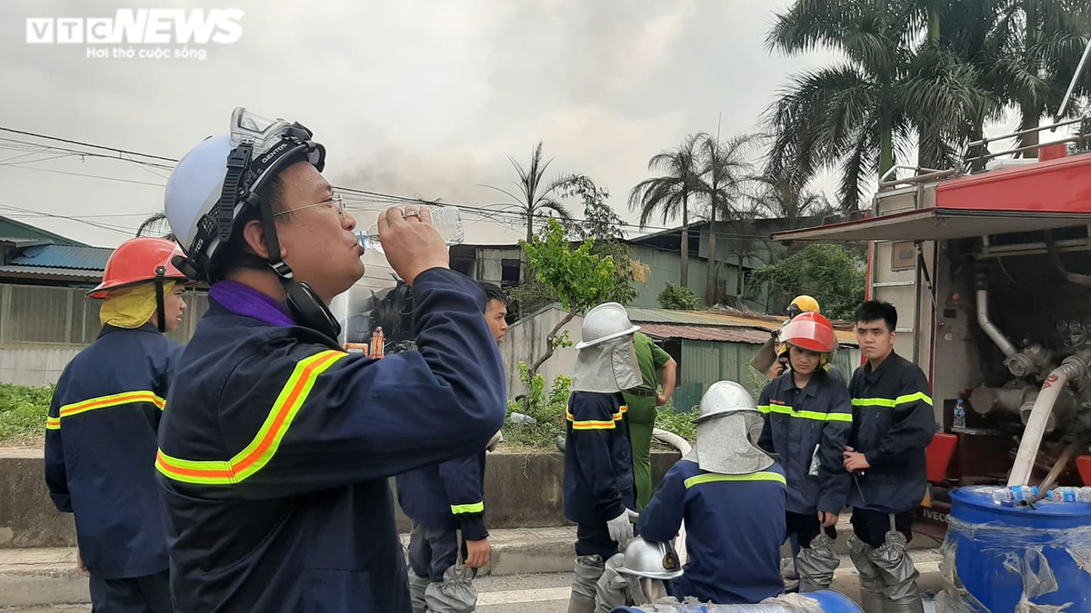 Khoảng 20 xe cứu hỏa cùng hàng trăm chiến sĩ Phòng cháy chữa cháy (PCCC) đươc điều động tới hiện trường. Sau nhiều giờ nỗ lực, đến khoảng 11h vụ hỏa hoạn ở Nhà máy hóa chất Đức Giang (Long Biên, Hà Nội) cơ bản được khống chế. Nhiều chiến sĩ căng mình dưới nắng và sức nóng của đám cháy khiến mồ hôi nhễ nhại.
