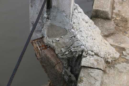 Cây cầu này do đã được xây dừng hàng chục năm nên hiện đã xuống cấp trầm trọng, nhiều mảng bê-tông đã bị mục rữa