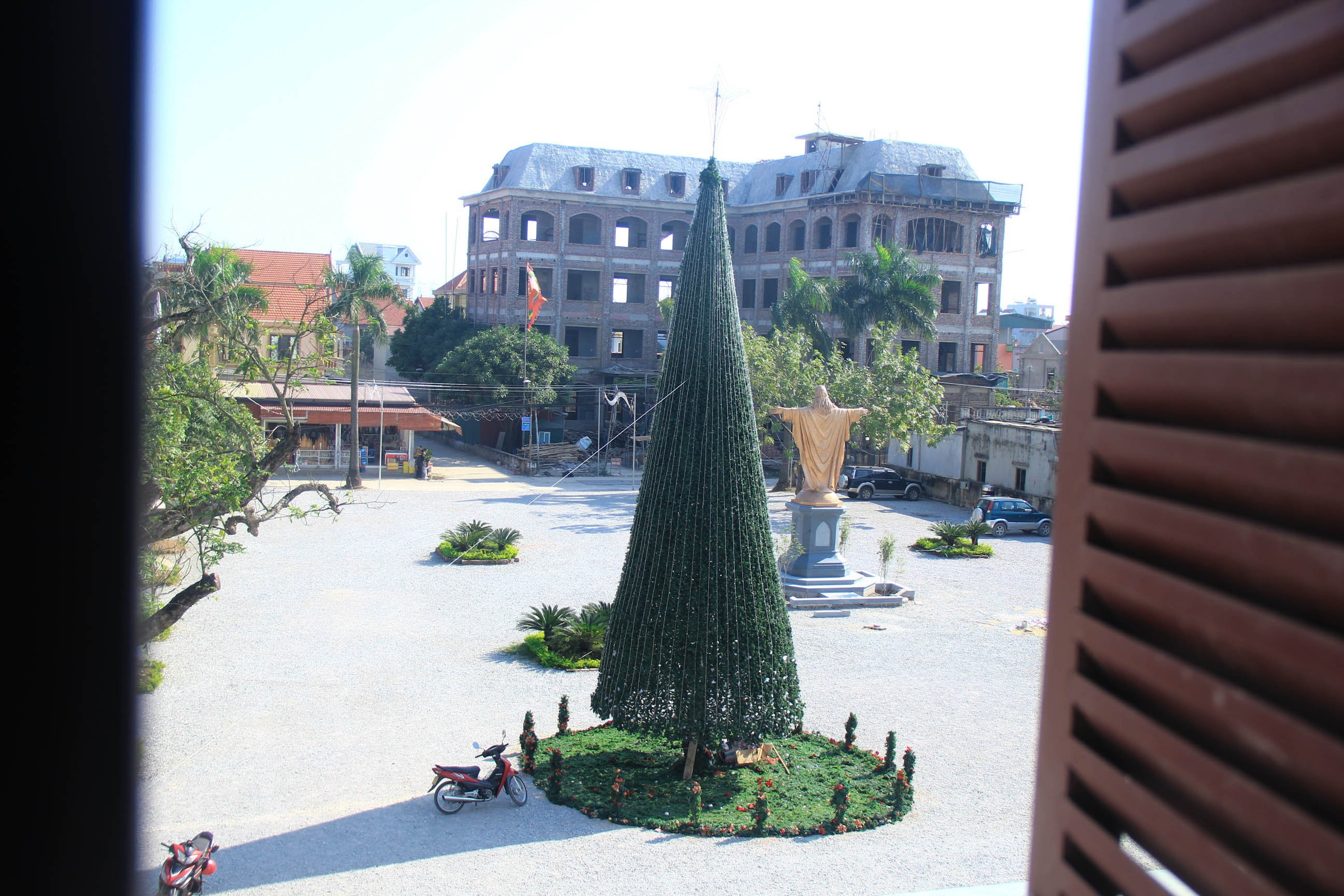 Một trong biểu tượng quan trọng không thể thiếu trong dịp lễ Giáng sinh là cây thông Noel. Tại trung tâm hành hương Bằng Sở, cây thông Noel cao 12m đã được dựng xong cách đây vài ngày.