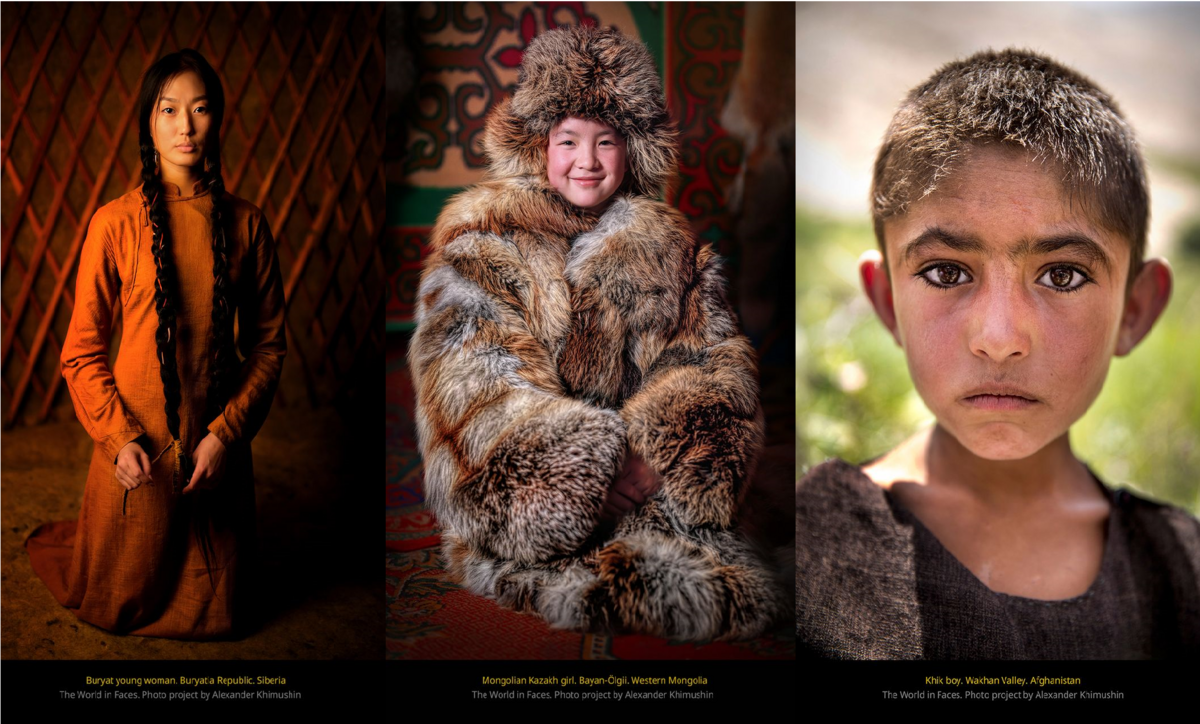 Khoảng 12 năm trước, Alexander Khimushin bắt đầu một cuộc hành trình thú vị đến 86 quốc gia để tìm kiếm các dân tộc nhỏ và các bộ lạc đang trên bờ vực tuyệt chủng, chụp ảnh chân dung của họ. Những tác phẩm xuất sắc nhất của ông được đưa vào dự án The World in Faces và giới thiệu tại triển lãm của Liên Hợp Quốc năm 2019. Mặc dù Alexander đã đi đến 86 quốc gia, nhưng Siberia vẫn chiếm một vị trí đặc biệt hơn cả trong lòng du khách này.