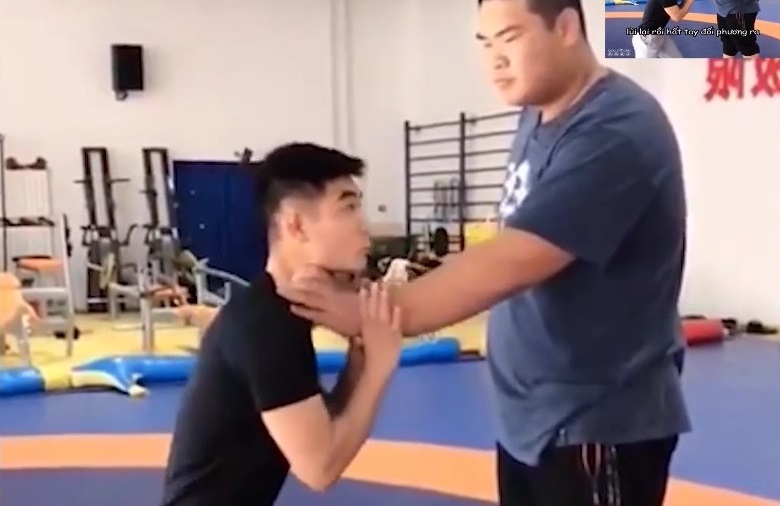 "Chém gió" về lý thuyết thì rất hay nhưng khi thực chiến, chàng trai bị đánh ngã lăn quay trước đối thủ to con.