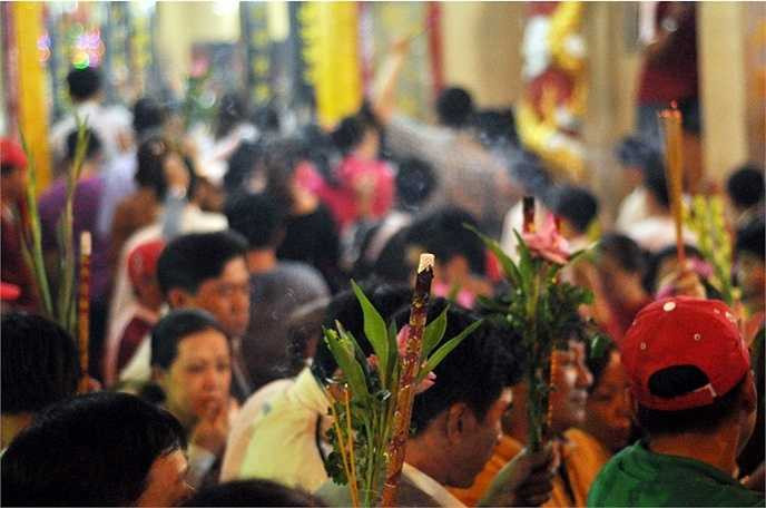 Lượng người đổ về đông khiến không khí tại ngôi chùa này rất ngột ngạt (Ảnh Phạm Nguyễn)