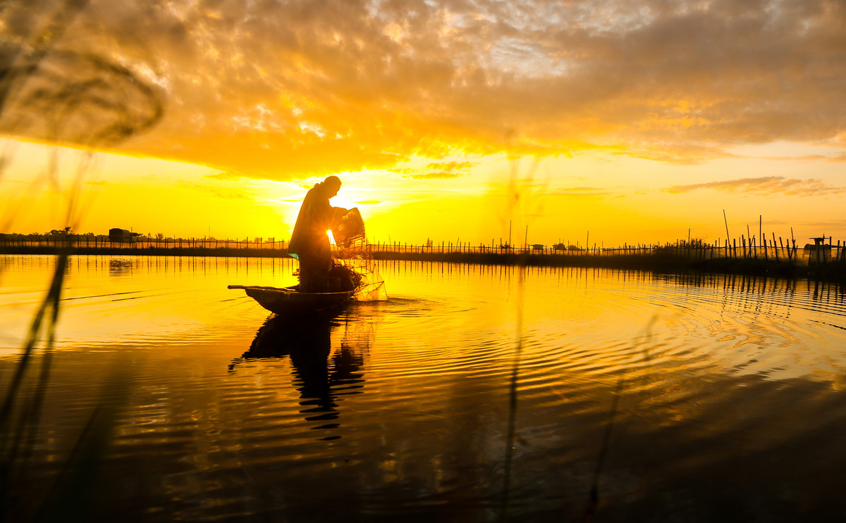Phá Tam Giang đẹp nhất lúc bình minh và hoàng hôn. Ở đây người ta bắt đầu làm việc từ đêm hôm trước, đến 5h hôm sau thì đưa thuyền về bến với đầy ắp cá, tôm.