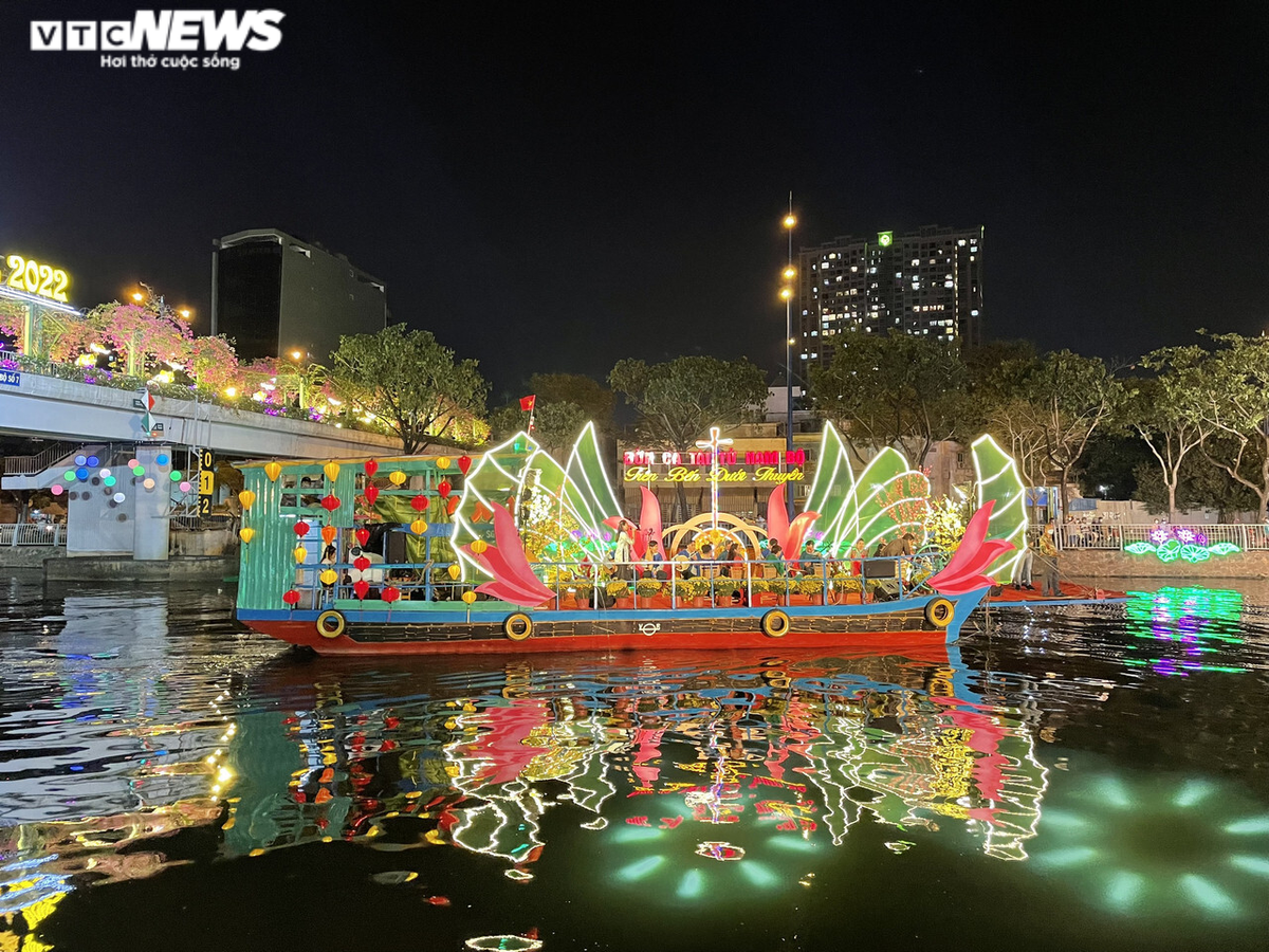 Những thuyền hoa khoe sắc rực rỡ đoạn kênh Tàu Hũ tạo nên một nét đặc trưng của chợ hoa xuân Sài Gòn dịp Tết.