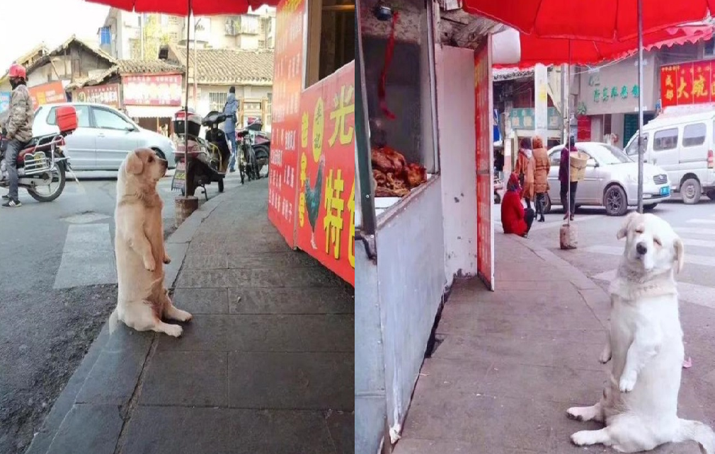 Trang Sohu cho biết, một cư dân mạng nhìn thấy cảnh tượng chú chó béo ngồi ngay ngắn trước một cửa hàng đồ ăn vặt nên nhanh tay chụp lại rồi đăng tải cùng dòng trang thái: "Một chú chó múp míp đang chờ ăn...".