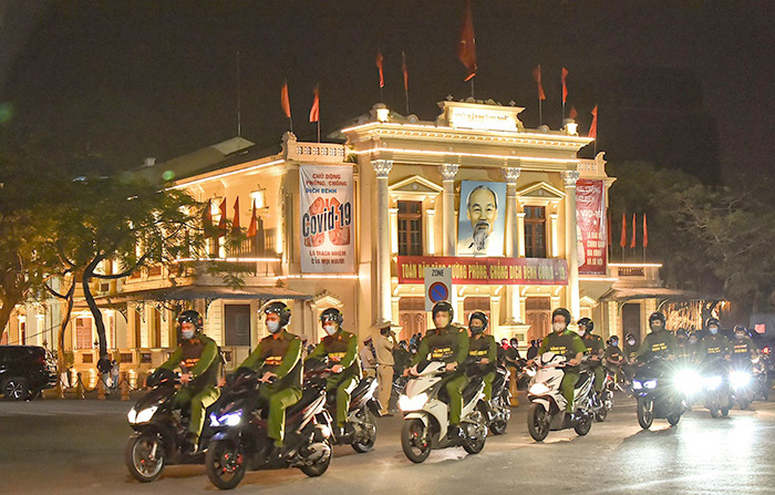 Thực hiện chỉ đạo của Chủ tịch UBND TP Hải Phòng, tối 3/4, tại Quảng trường Nhà hát Thành phố, Công an TP Hải Phòng tổ chức ra quân tăng cường công tác tuần tra, kiểm soát sau 22h trong những ngày cách ly toàn xã hội từ 1/4 đến 15/4.
