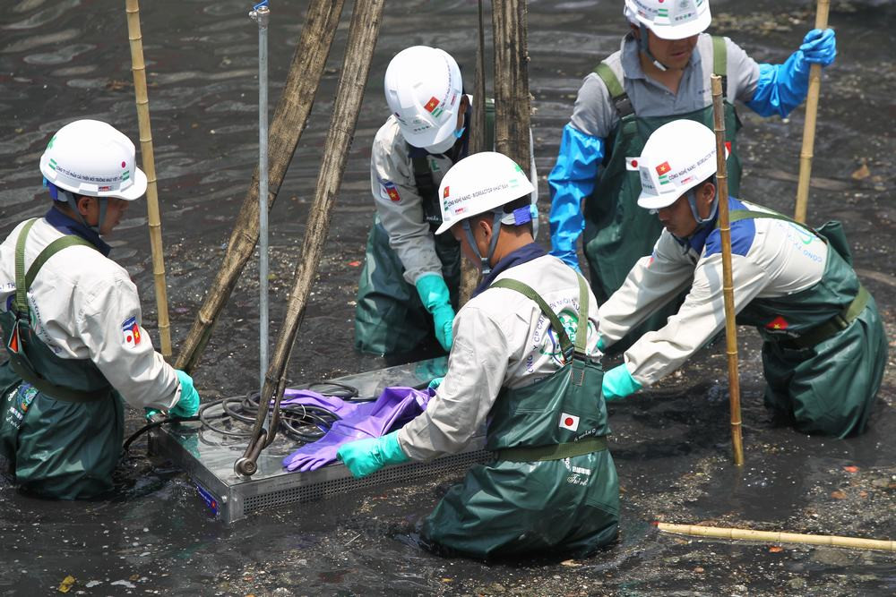 Các chuyên gia Nhật Bản trực tiếp đặt máy lọc xuống sông Tô Lịch. Một chuyên gia người Nhật cho biết: "Với máy sục khí công nghệ bio-nano, chỉ sau ba ngày, mùi ô nhiễm ở sông Tô Lịch sẽ giảm nhiều".