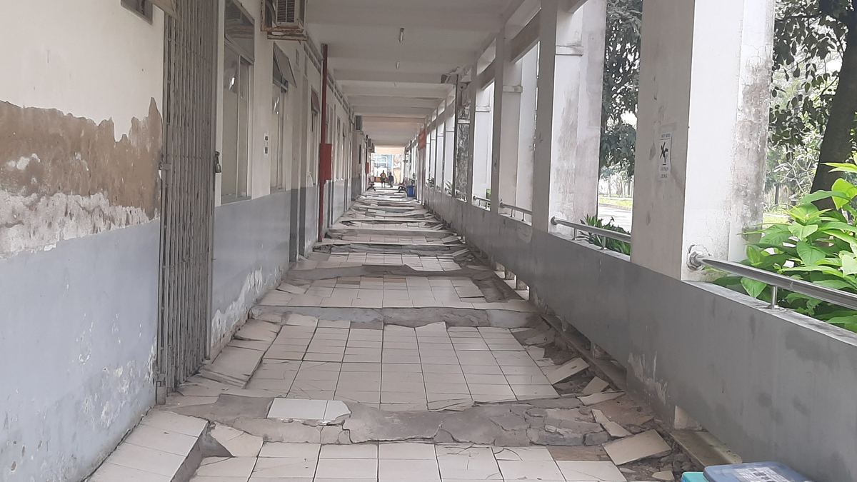 Hành lang Bệnh viện sụt lún, trồi sụt như ruộng cày nhiều năm nay. Lãnh đạo Bệnh viện nhiều lần kiến nghị lên Sở Y tế TP.HCM nhưng chưa được giải quyết. Khó khăn, vướng mắc hiện nay là do các giấy tờ liên quan khi xây dựng bệnh viện và Công ty Hà Đô không còn.