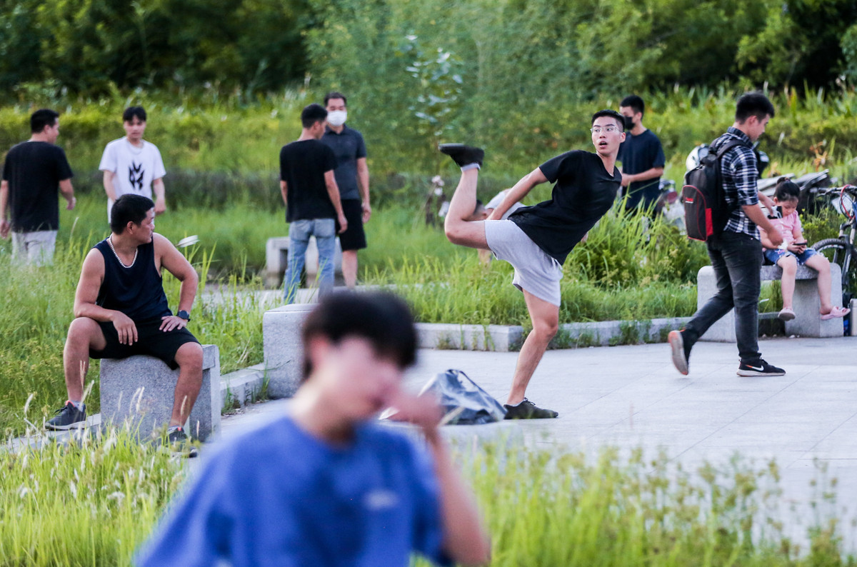 Cùng nhóm bạn khoảng 10 người thường xuyên đến đây tập trượt ván, bạn Quỳnh Nương (20 tuổi, Cổ Nhuế) cho biết: “Tại khu vực trước cổng Công viên hồ điều hòa Mai Dịch, không gian khá thoáng và bằng phẳng, đây là điểm lý tưởng cho nhiều người đến đây tập luyện các môn thể thao”.