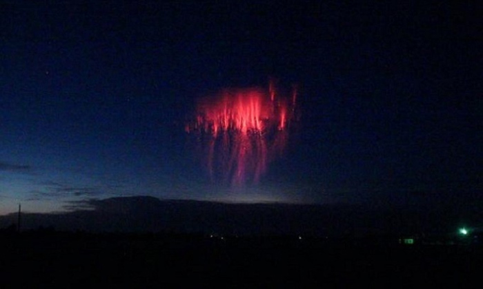 Hình ảnh sét lửa như một con sứa màu đỏ.