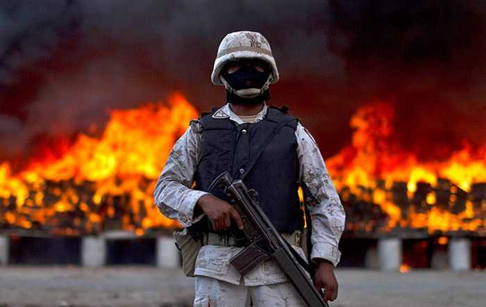 Binh sĩ Mexico canh gác trong lúc tiêu hủy cần sa và cocaine
