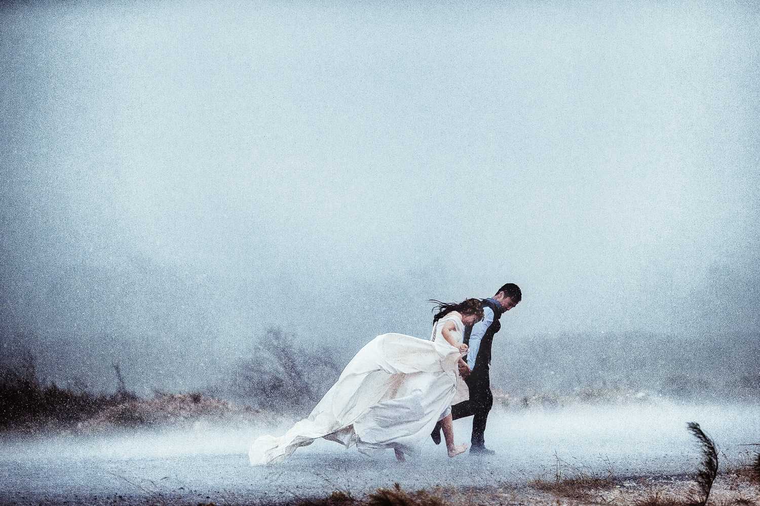 Nếu những ai cho rằng chỉ những ngày đẹp trời mới thích hợp để chụp ảnh cưới thì với bộ ảnh độc đáo này, có thể suy nghĩ này sẽ được xem xét lại.