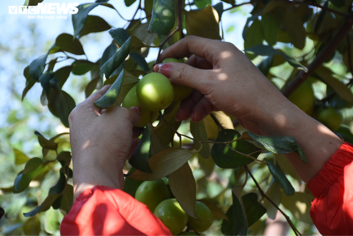 Thời điểm hoa táo ra trắng vườn cũng là lúc thời tiết khắc nghiệt, mưa liên tục suốt 1 tháng khiến hoa rụng nhiều, sản lượng táo giảm 70% so với mọi năm. Đó là chia sẻ của bà Nguyễn Thị Huyền - một chủ vườn táo muối Bàng La (quận Đồ Sơn, Hải Phòng) khi dẫn chúng tôi đi thăm vườn.