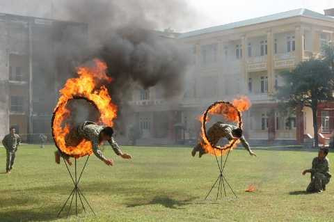 | Đại tướng Kimizuka Eiji đến thăm và xem chiến đấu viên Đoàn 1 – Bộ Tư lệnh Đặc công biểu diễn một số kỹ năng. |