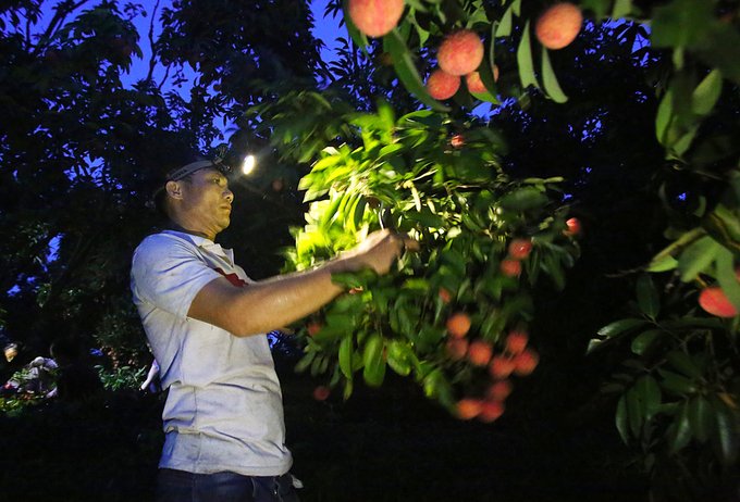 Gần hai tuần nay, người dân các xã của huyện Lục Ngan (Bắc Giang) tập trung thu hoạch vải thiều chính vụ. Họ dậy từ 2h, chong đèn hái vải để kịp đưa xuống chợ bán trong buổi sáng.