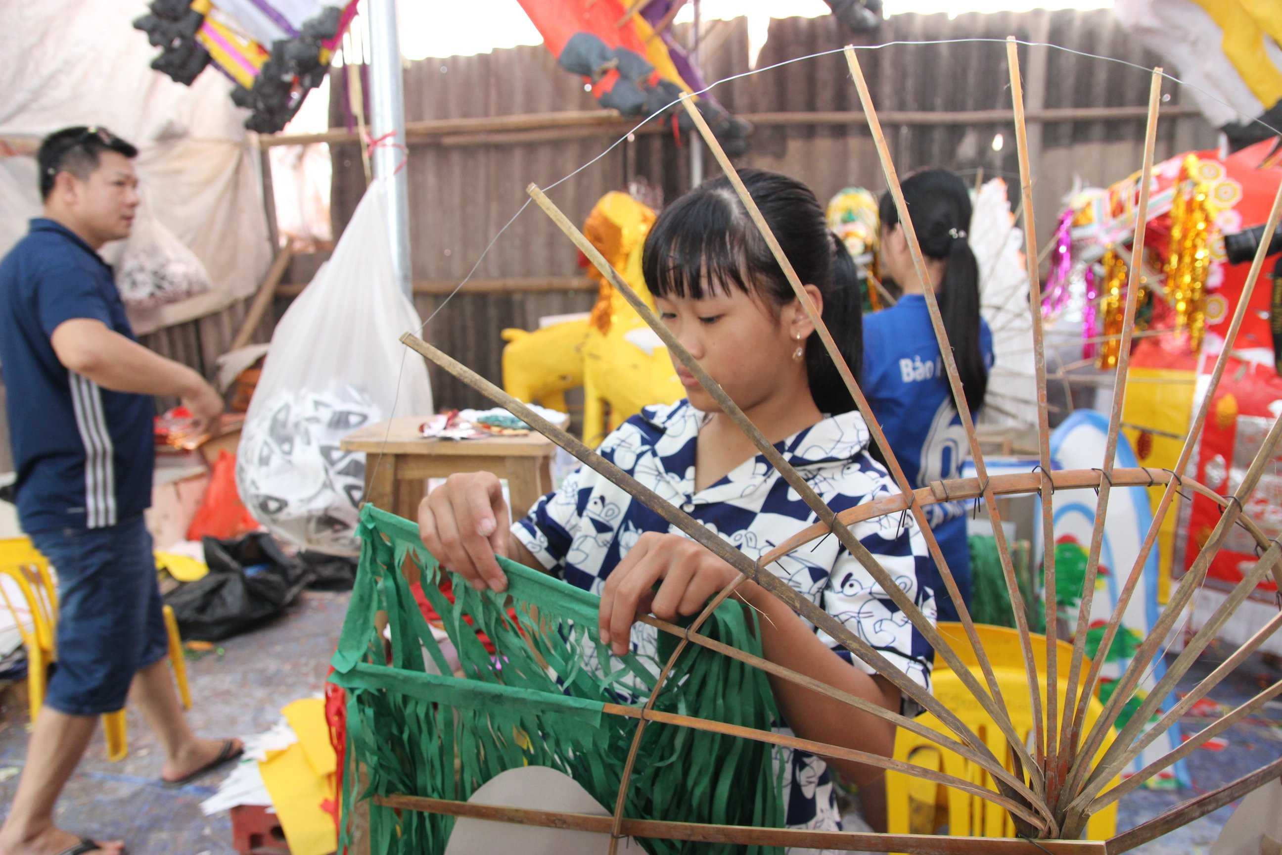 Dịp này, các em nhỏ ngoài việc học cũng tham gia vào việc sản xuất vàng mã.