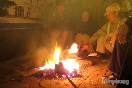 | Trên dọc những tuyến phố, người dân lao động, công nhân đốt lửa chống chọi lại với cái rét cắt da cắt thịt. |