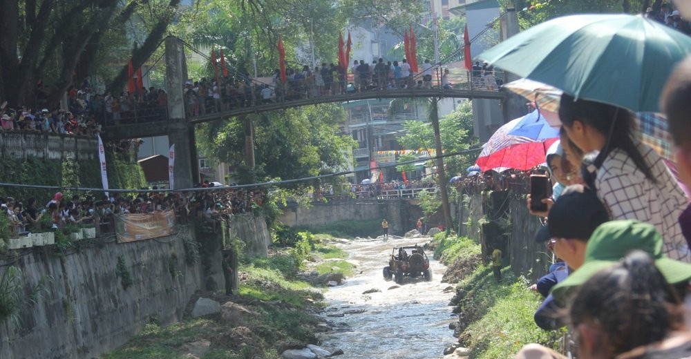 Rất đông người dân và du khách đứng hai bên dòng suối cổ vũ cho các tay đua.