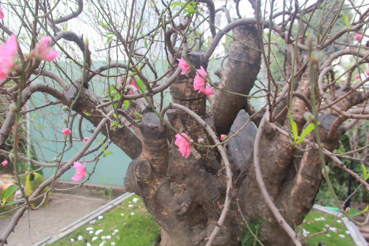 Chủ nhân của cây cho biết, gốc đào này được lấy ở trên rừng, đưa về trồng và chăm sóc tại Nhật Tân 4 năm nay.