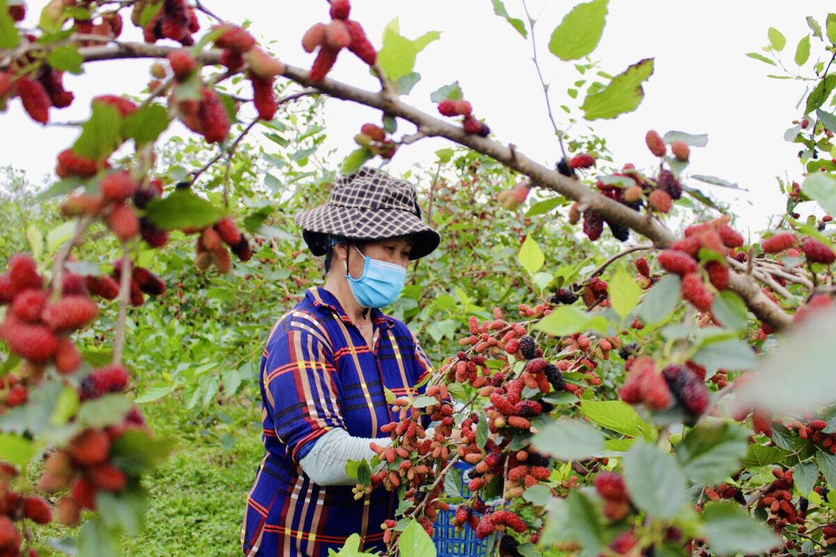 "Cây dâu tằm dễ trồng, ít sâu bệnh, chỉ cần lưu ý ở thời điểm cây ra quả vì lúc này quả dâu rất dễ bị nấm. Giai đoạn này gia đình tôi phải thức dậy sớm để phun sương cho cây. So với nghề trồng lúa, cây dâu đem lại hiệu quả kinh tế cao hơn 2 - 3 lần", ông Đỗ Mạnh Quân nói.