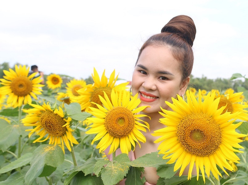 Do đó, tranh thủ khi hoa vừa nở độ 1 tuần, nhóm phụ nữ này diện lên mình những bộ váy nhiều màu sắc, xúng xính tạo dáng giữa nghìn đóa hoa mặt trời.
