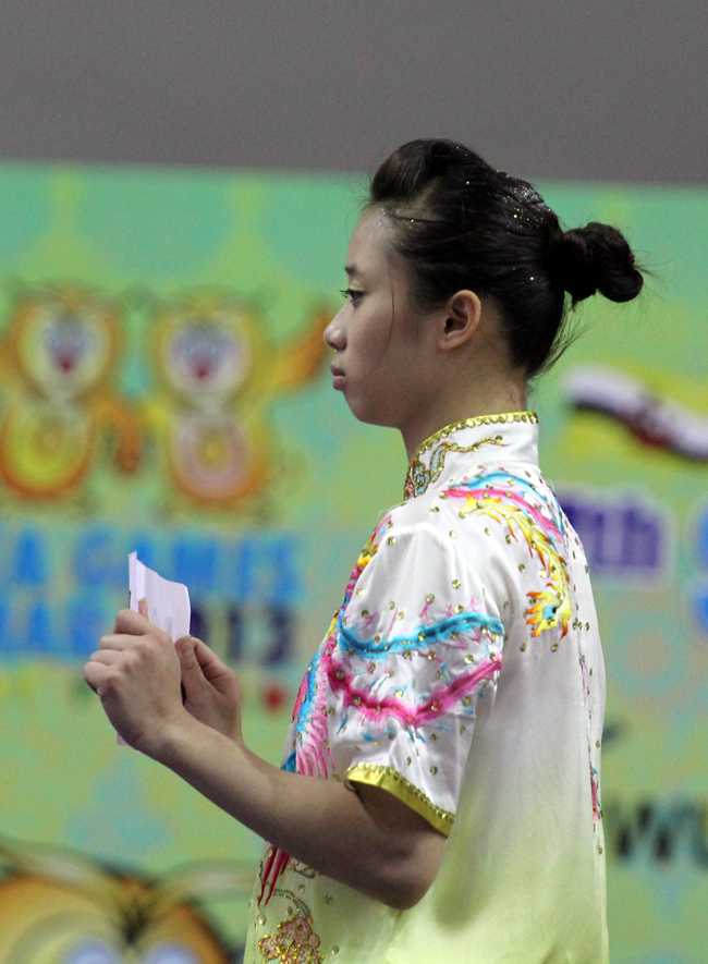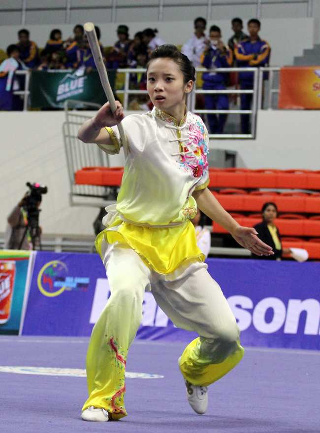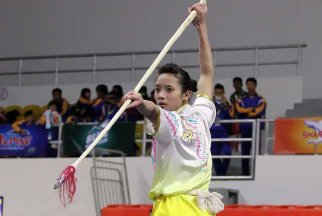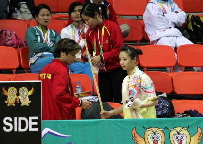 | Cô trở thành niềm hy vọng Vàng của Wushu Việt Nam trong ngày thi đấu thứ 3 (9/12/2013) của môn đấu này. |