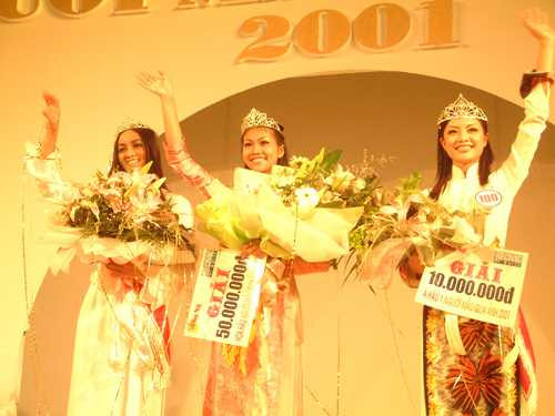 | Thanh Hằng (giữa) đăng quang Hoa hậu VN qua ảnh 2001 |