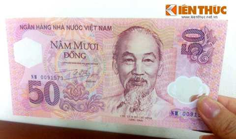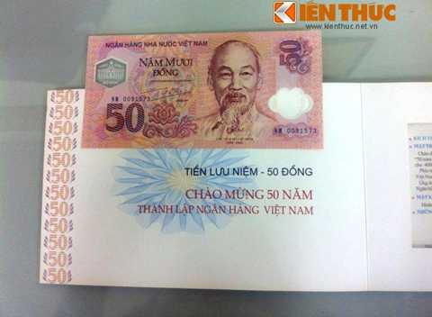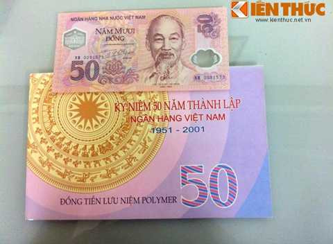 Đồng tiền lưu niệm đầu tiên của Ngân hàng Nhà nước có mệnh giá 50 đồng, đây cũng là tờ tiền mẫu in trên giấy Polymer đầu tiên ở Việt Nam