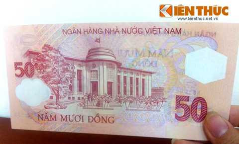 | Mặt sau của tờ 50 đồng là hình ảnh trụ sở chính Ngân hàng Nhà nước Việt Nam. Mệnh giá 50 đồng tượng trưng cho 50 năm thành lập Ngân hàng Việt Nam. Hình ảnh mặt sau tờ 50 đồng. |