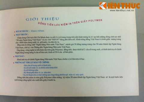 | Ở mặt trong của quyển đựng đồng tiền là các thông tin giới thiệu về tờ 50 đồng trên giấy Polymer |