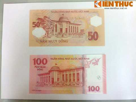 | Hình ảnh mặt trước của tờ 100 đồng và tờ 50 đồng, hai tờ tiền lưu niệm của ngân hàng Nhà nước Việt Nam đang dược dư luận quan tâm. |