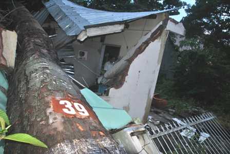| Một căn nhà tại phường 1, thành phố Cao Lãnh bị cây to ngã đè lên |