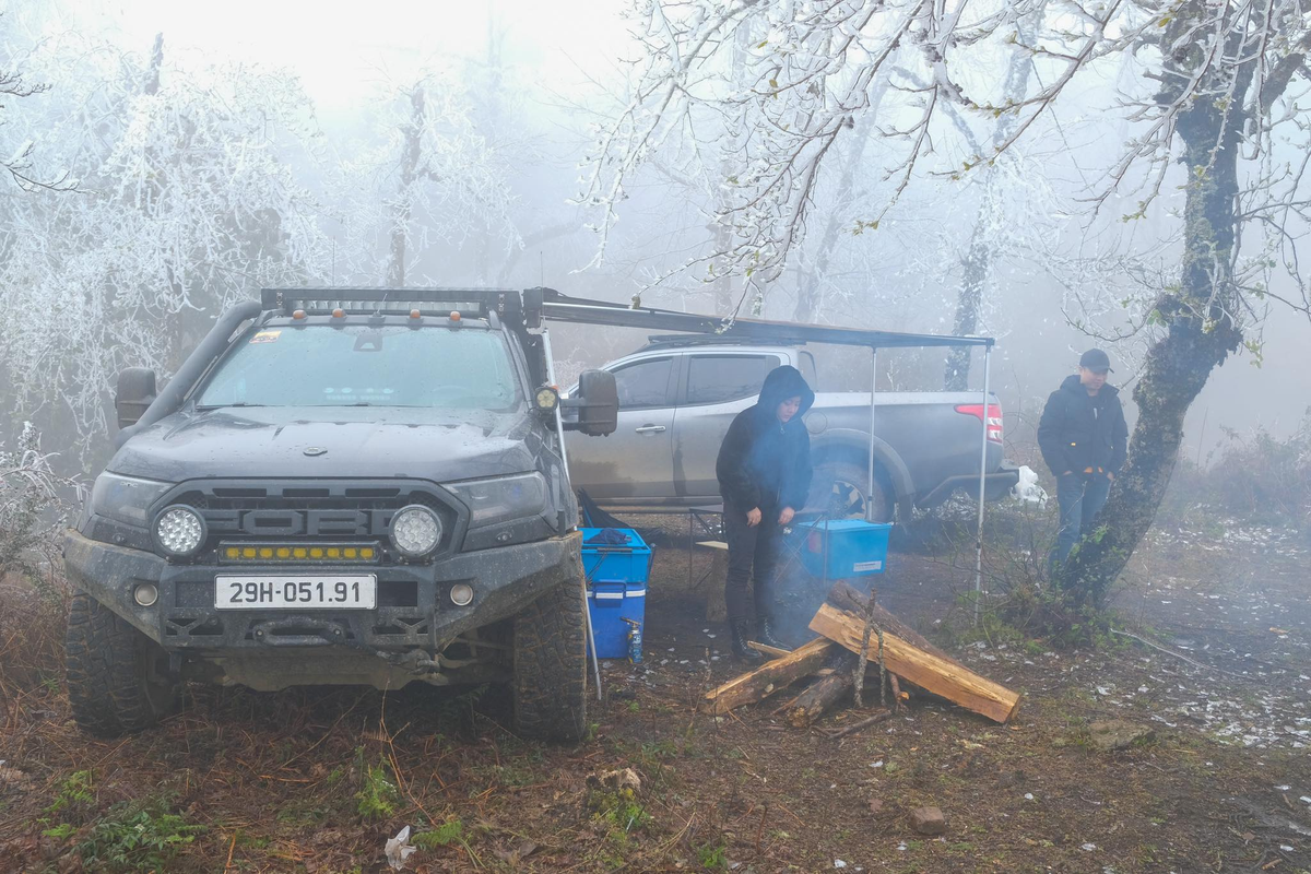 Anh Lê Vũ Tùng (CLB xe bán tải địa hình) cùng nhóm bạn di chuyển từ Hà Nội lên thẳng Ngải Thầu để dựng lều trại.